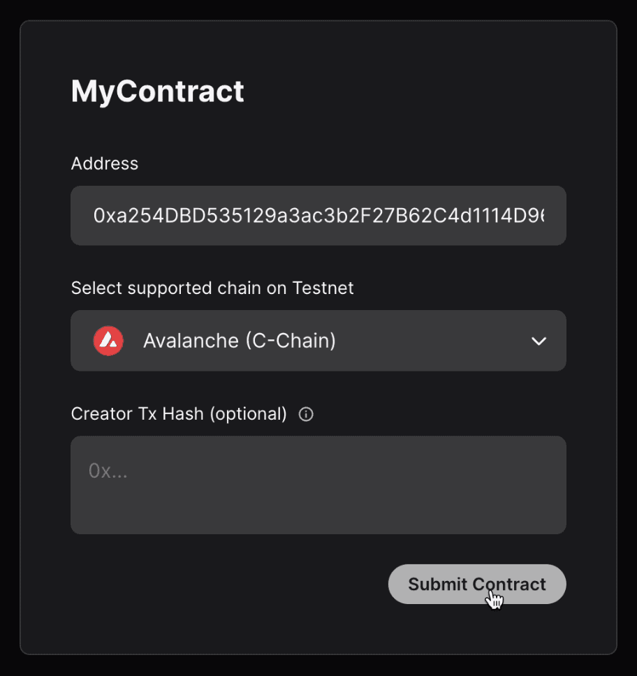 - Click on the Submit Contract button to start the verification process.